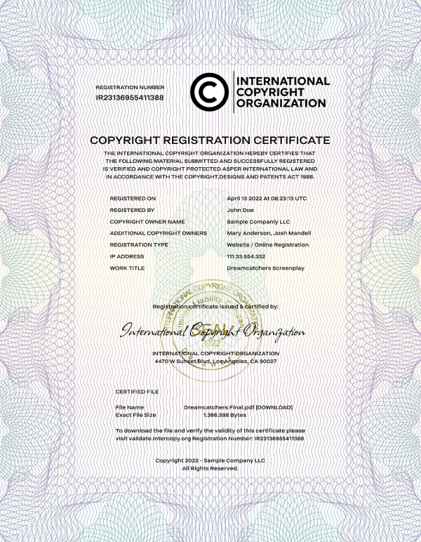 Our copyright protection is easily validated and legally enforceable in 181 countries that comply with the Berne Convention Treaty Signatories and extends to non-treaty compliant countries as blockchain immutability can be validated in any court.